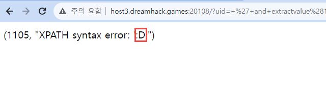 즉, xpath 식 자리에 [ : #@$@!!~ ] 이런 양식이면 error를 발생한다는 점이다.